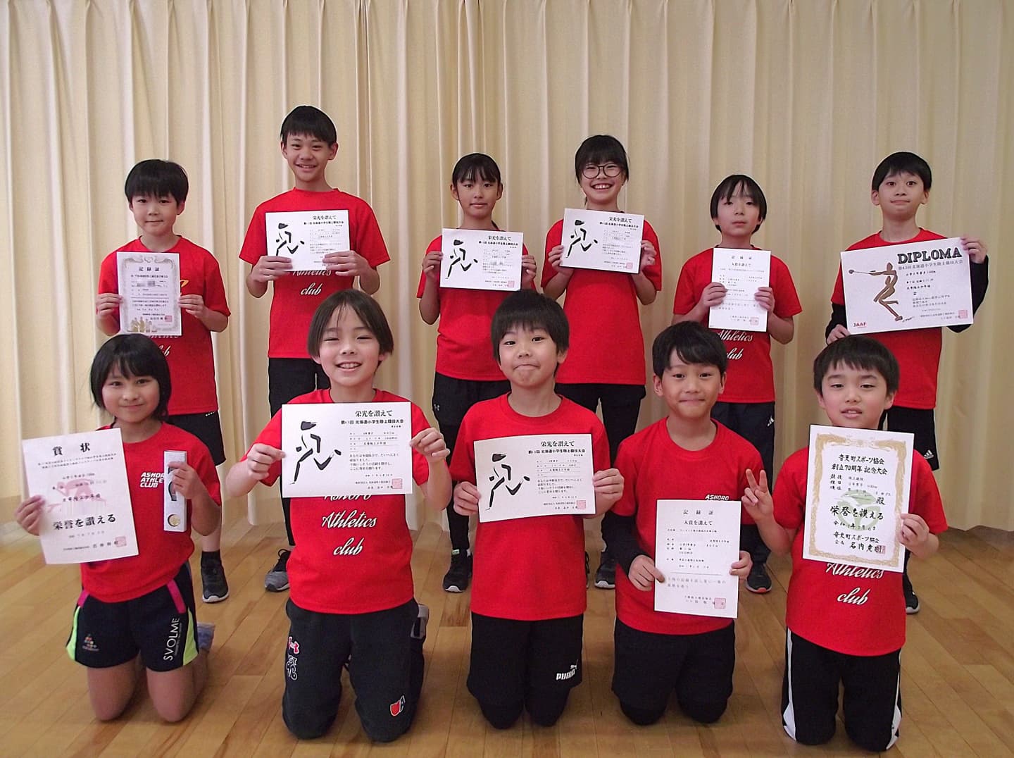 足寄陸上少年団に所属する本校児童が第43回北海道小学生陸上競技大会、音更町スポーツ協会創立70周年記念大会、サーキット陸上競技大会および第11回苫小牧白鳥ライオンズクラブ杯小学生陸上競技大会 兼 第33回北海道陸上競技フェスティバル苫小牧会場において優秀な成績を収めましたので、伝達表彰が行われました。